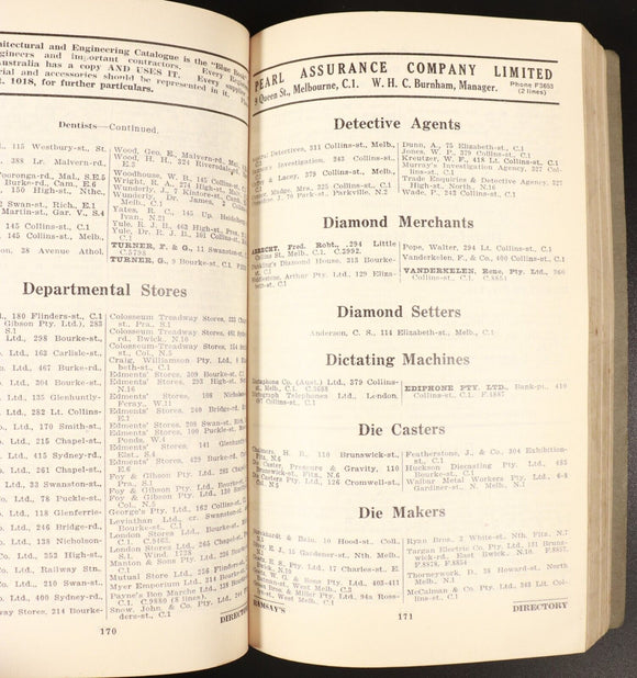 Seller Notes: General wear to covers & spine with marks, stains, soft edges, minor loss etc. Binding is excellent with no loose pages. Pages are clean and well presented. Contains a few old ink stamps from "Jonson Johnstone & Buckley". A nice copy of a scarce Melbourne History Reference book in very good condition overall. Please study photos to further understand condition.