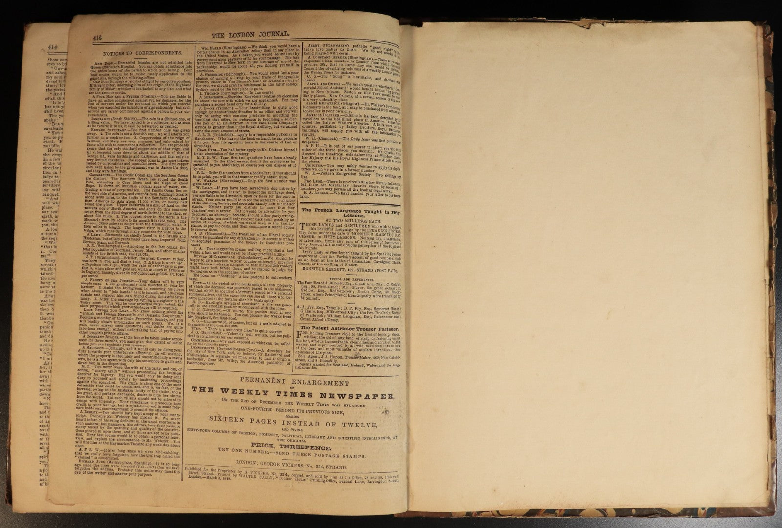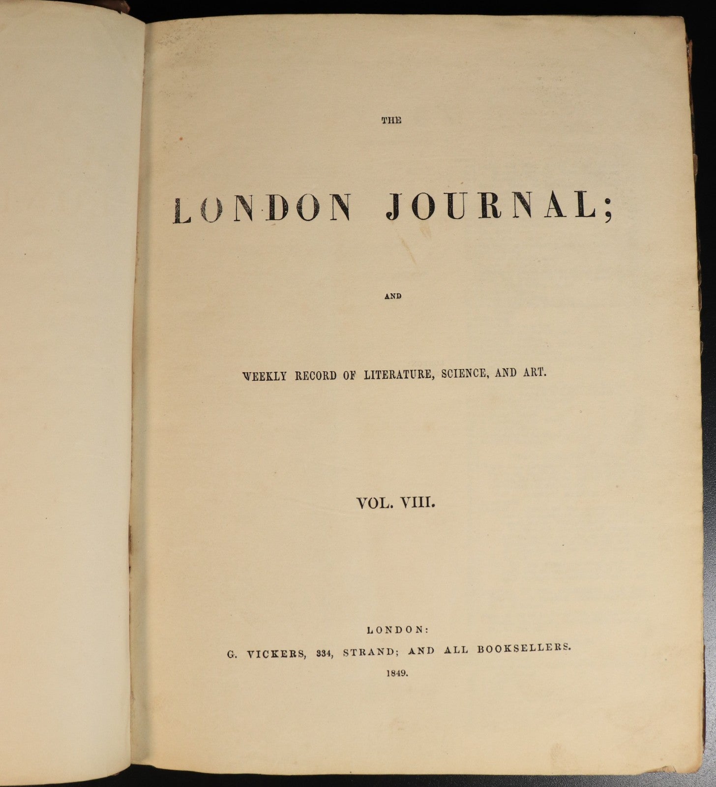 Published by G. Vickers: London 1849