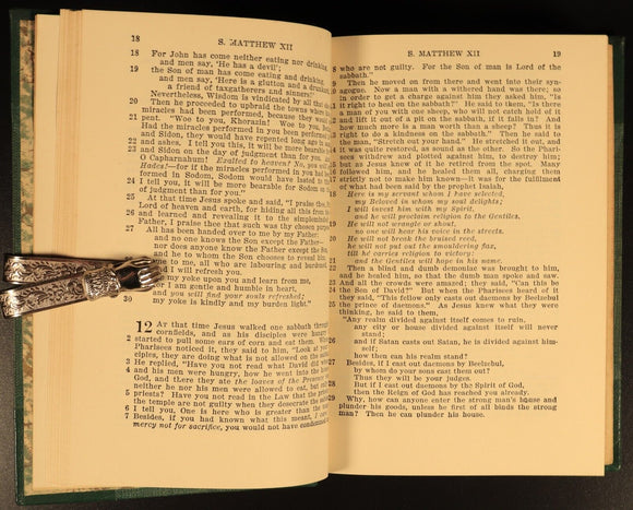 Seller Notes: Light wear to covers and spine. Binding is solid with no loose pages. Prize plate from 1934 as shown. A beautiful antique bible in very good condition overall. Please study photos to further understand condition.