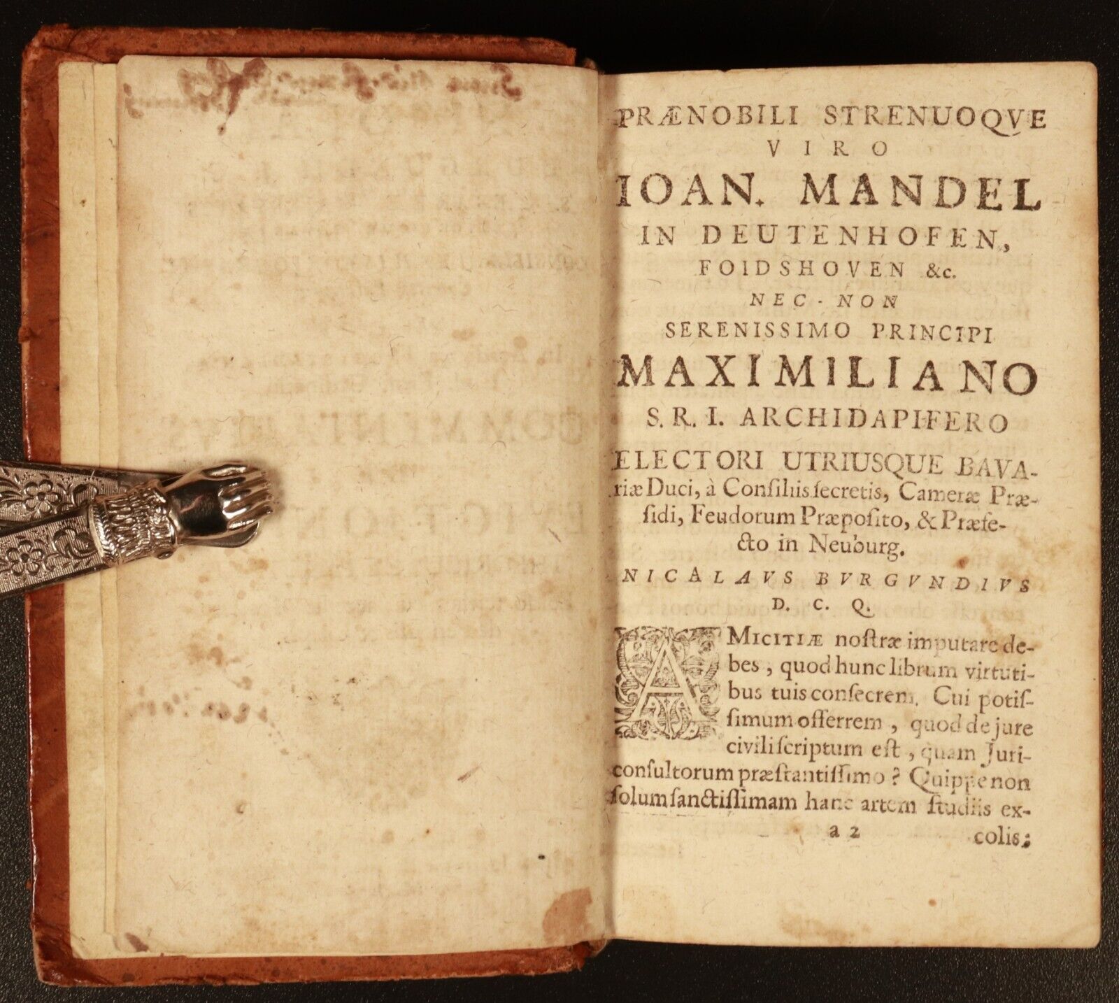 Nicolai Burgundii (1586 - 1649) was an author and professor. The University of Ingolstadt was founded in 1472 by Louis the Rich, the Duke of Bavaria at the time, and its first Chancellor was the Bishop of Eichstätt. Colonia Claudia Ara Agrippinensium was the Roman colony in the Rhineland from which the city of Cologne, now in Germany, developed. It was usually called Colonia and was the capital of the Roman province of Germania Inferior and the headquarters of the military in the region.