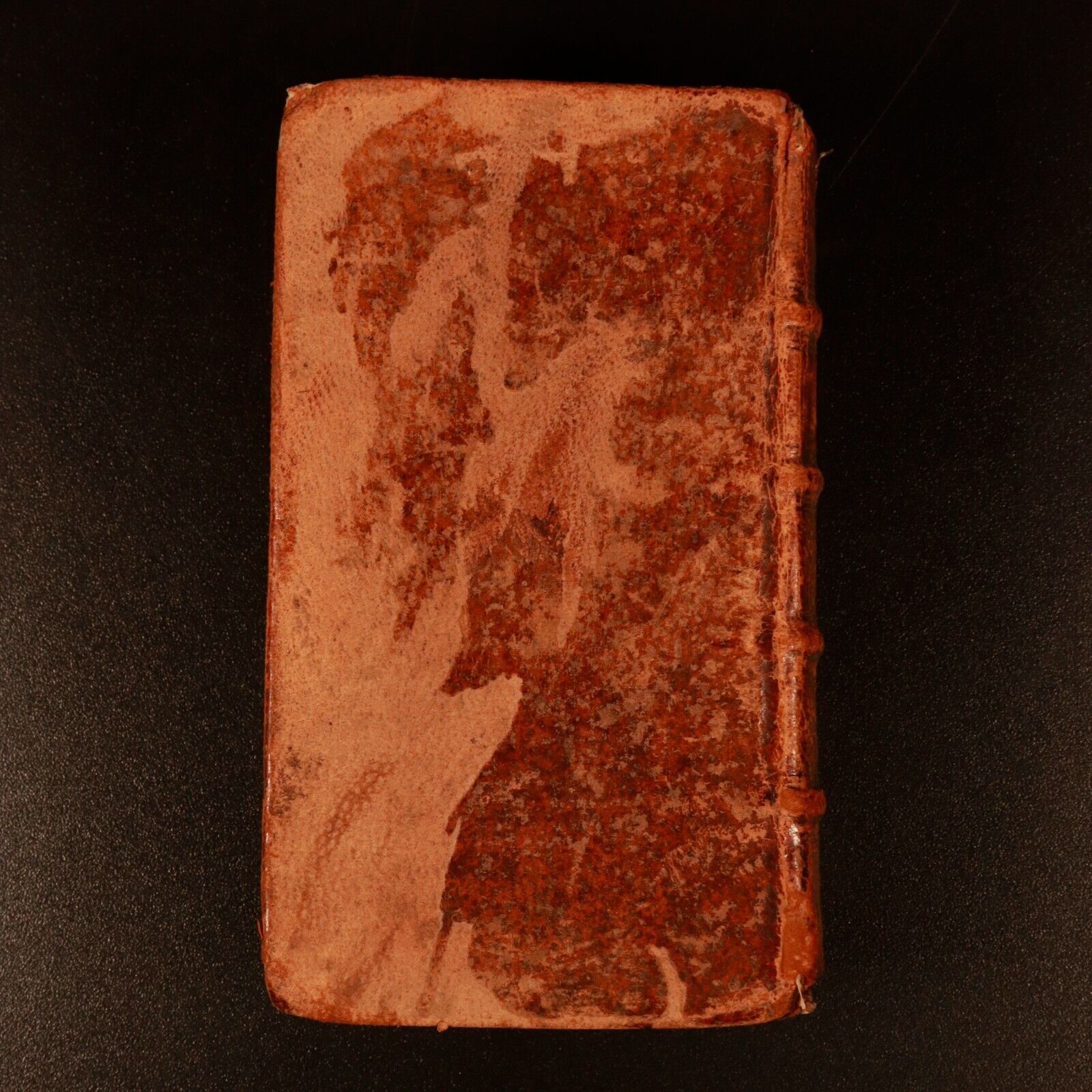 If you look closely on the back inside cover of this book you will see the feint outlines of handwritten manuscript text uséd as binding underneath the pastedown. Truly beautiful history that could potentially date that piece to pre 1600. Both volumes are