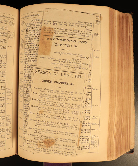 Seller Notes: General wear, fading, rub through and some hinge splitting to covers and spine. Bible is full of ephemera including pre 1900 postcards, old newspaper articles, bookmarks, pressed flowers etc. There is one loose page cluster at the back otherwise no loose pages and bible is complete. A nice bible with interesting additions in good condition overall . Please study photos to further understand condition.