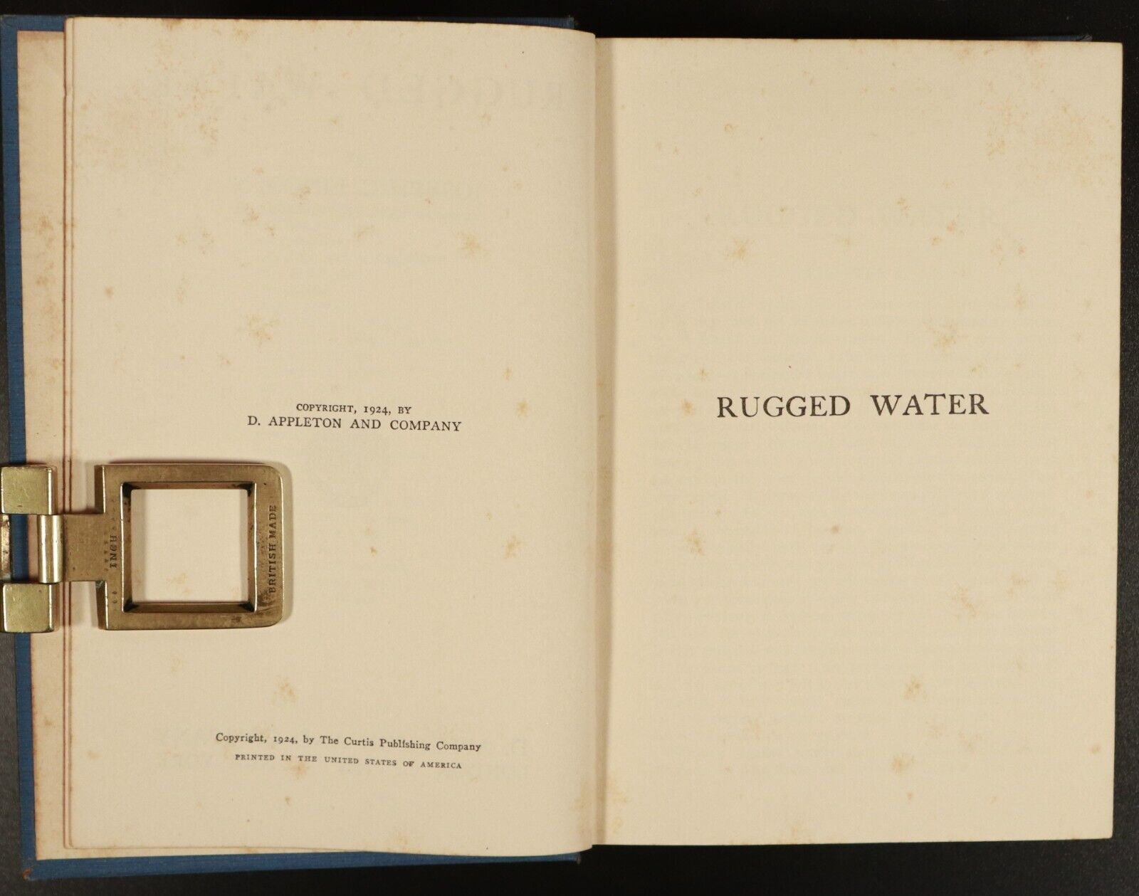 1924 Rugged Water by Joseph C. Lincoln 1st Edition Antique American Fiction BookRugged WaterBy Joseph C. LincolnPublished by D. Appleton And Company: London & New York 1924 1st Edition"Joseph Crosby Lincoln (February 13, 1870 - March 10, 1944) was an American author of novels, poems, and short stories, many set in a fictionalized Cape Cod."General wear and fading to cover and spine as shown. No inscriptions. Some light foxing present. Binding is very good with no loose pages. Browning to endpapers. Please study photos to understand condition. Happy to provide more photos on request.Size 19cm x 13.5cm x 3.5cm - 385 Pages