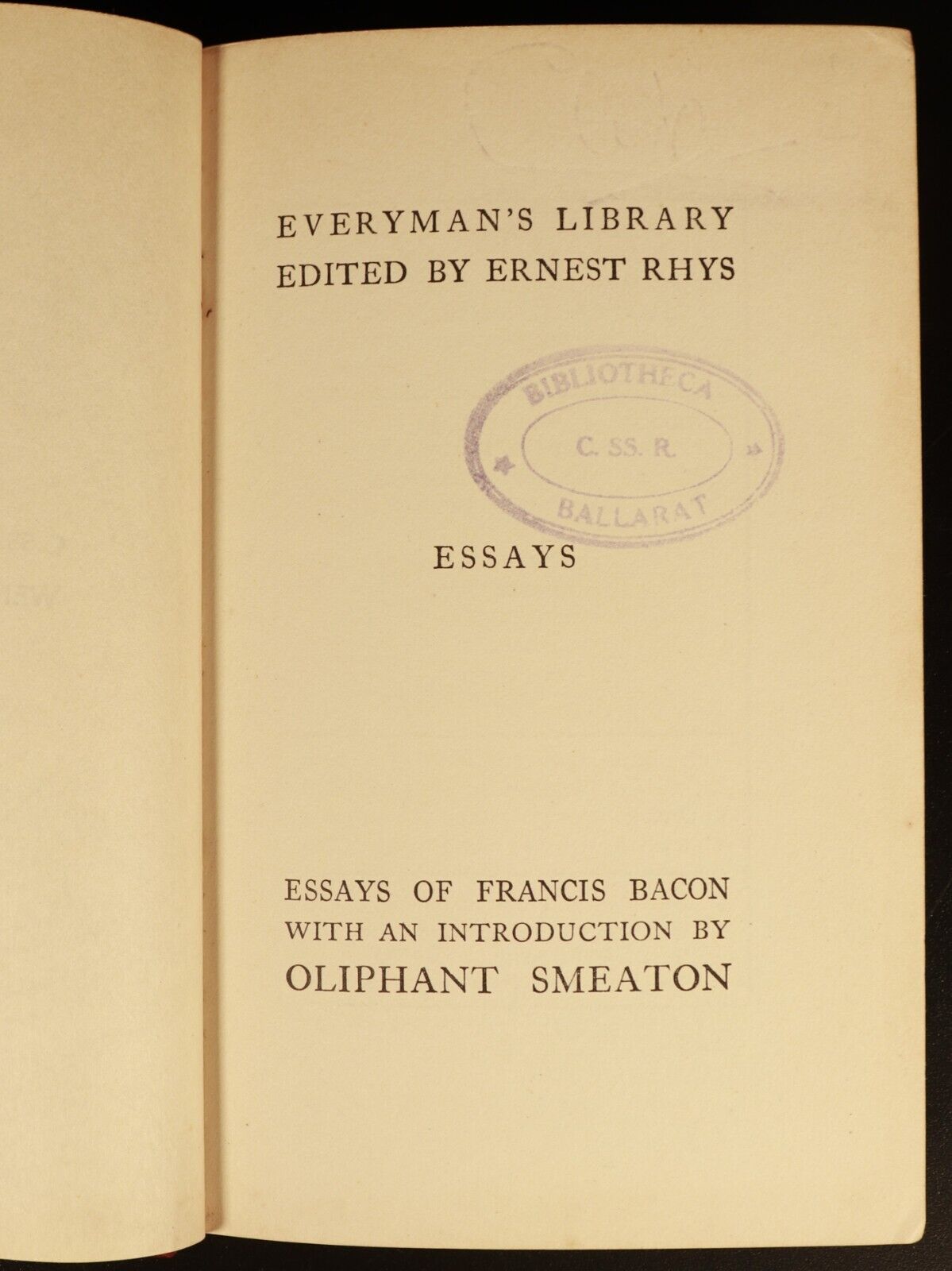 1928 Essayes Civill & Morall Of Francis Bacon Antique British Philosophy Book