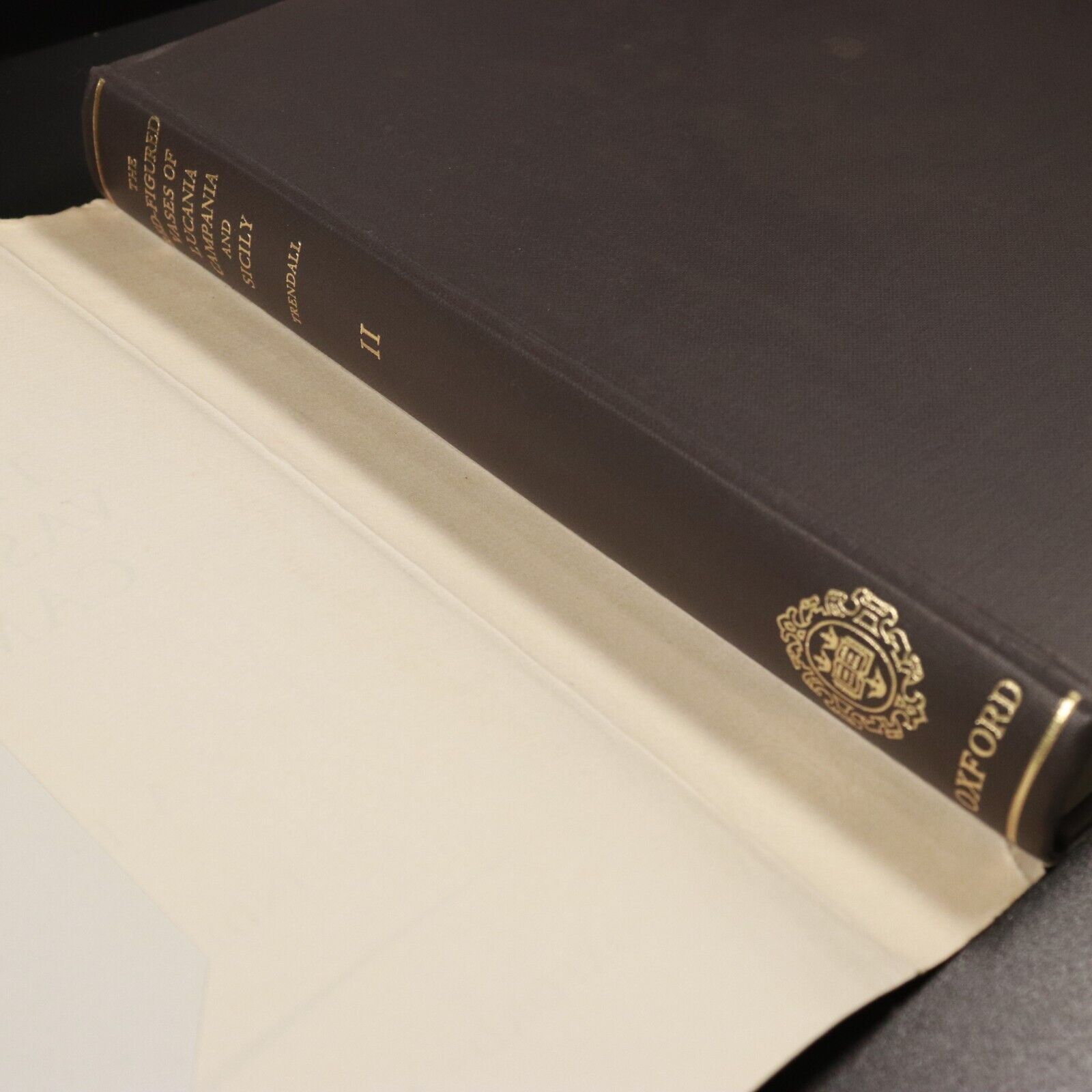 1967 Red Figured Vases Of Lucania Campania Sicily Archaeology Book Vol 2. PlatesThe Red-Figured Vases Of Lucania Campania, And SicilyBy A.D. TrendallVolume II Indexes And PlatesPublished At The Clarendon Press: Oxford 1967 1st Edition"Arthur Dale Trendall (1909 - 1995) was a New Zealand art historian and classical archaeologist whose work on identifying the work of individual artists on Greek ceramic vessels at Apulia and other sites earned him international prizes and a papal knighthood."General wear, fading, light staining, chipping etc to dustjacket as shown. Light spotting to endpapers only. Pages and plates very clean and well presented with a touch of yellowing. Binding is excellent with no loose pages. Good to very good condition overall. Please study photos to further understand condition.Size 29cm x 23cm x 3.5cm - 256 Plates