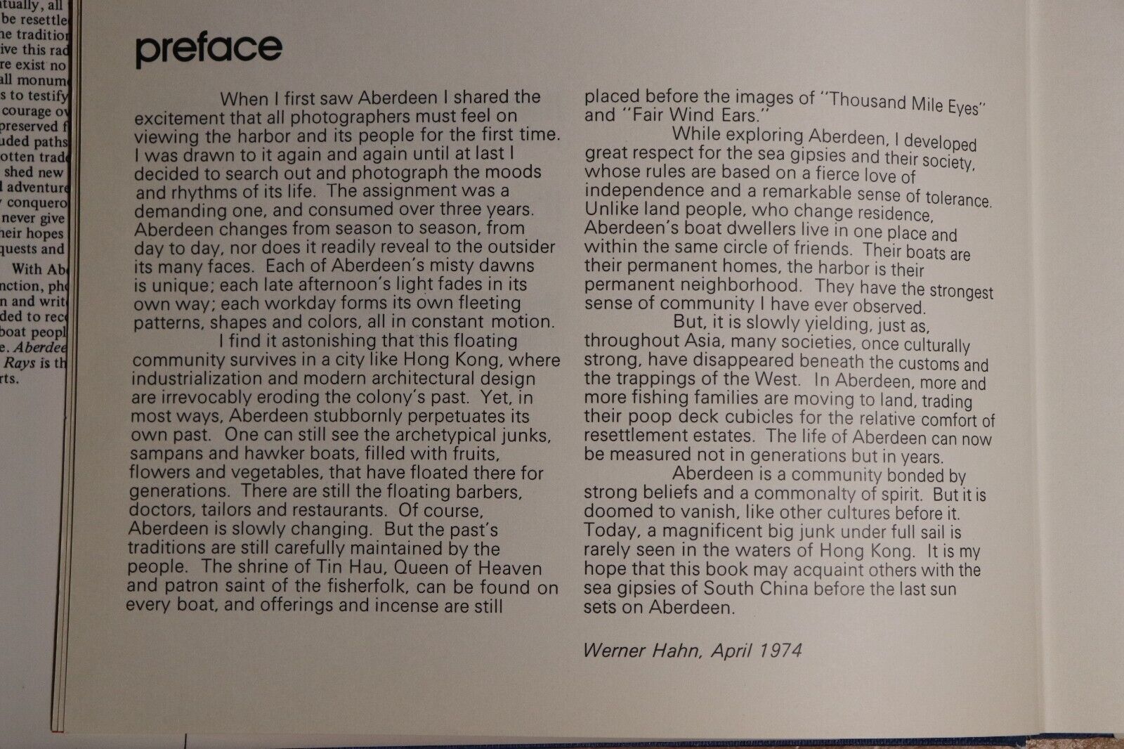 1974 Aberdeen: Catching The Last Rays Werner Hahn Vintage Hong Kong History Book